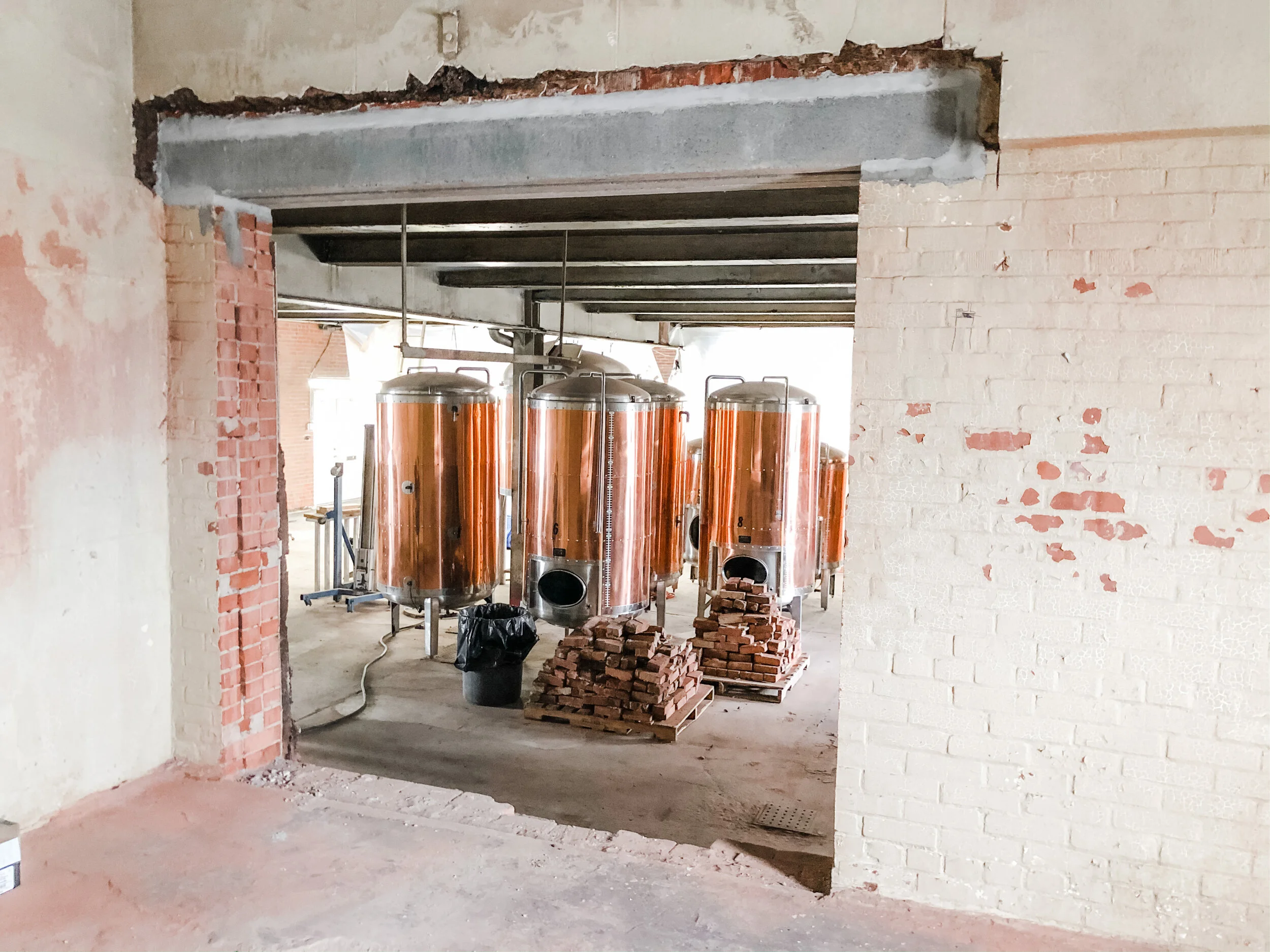 Enlarging the opening from the kitchen into the brewpub.